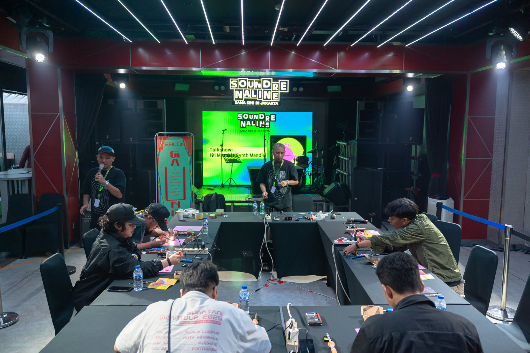 Pada sesi ini, peserta akan merakit modul biosynth, sebuah sintetis bunyi sederhana yang dikembangkan oleh Andreas Siagian. Biosynth dirancang dengan jumlah komponen yang efisien, untuk memperkenalkan pemahaman elektronika dasar. Sesuai namanya, biosynth bekerja melalui sentuhan tubuh yang memanfaatkan tahanan listrik alami dari tubuh pengguna. Desain dan antarmuka biosynth terinspirasi dari gerak fauna di alam bebas, menjadikannya bukan sekadar perangkat elektronik, tetapi juga objek belajar yang menggabungkan kepekaan tubuh, teknologi, dan imajinasi bunyi.